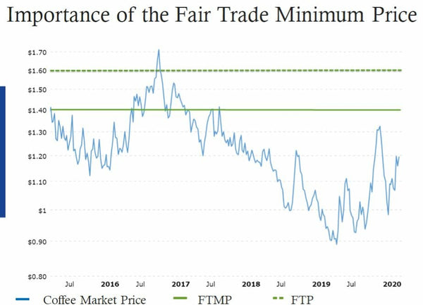 Market price fluctuations of commodity coffee and the Fair Trade minimum price c/o Fair Trade USA®️