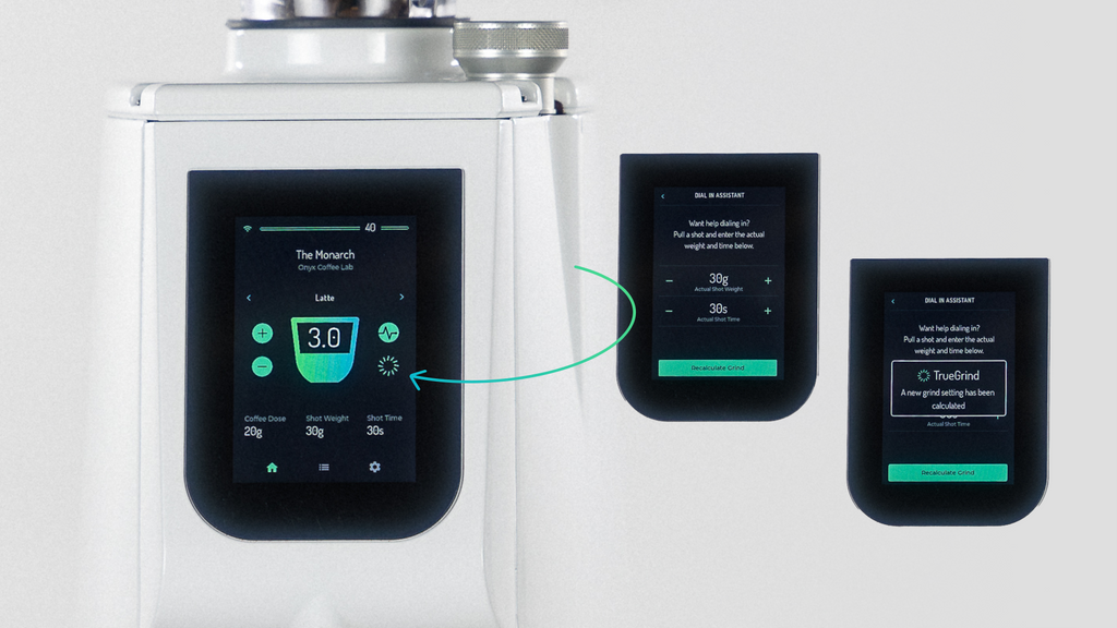 Thus, you can enter a target recipe (coffee dose, desired liquid espresso yield, and brew time) for the grinder to suggest a starting grind position as a numerical value. You only have to manually turn the adjustment dial in the direction of the arrow and stop when you reach the suggested grind setting. This predictive model constantly grows based on feedback, and data points are entered to improve constantly. Thus, TrueGrind, in a way, does dial in itself, you just have to turn the adjustment knob. Once we achieved results, we needed to materialize it in a grinder; we collaborated with Eureka and based our design on the Atom 75. Pairing the Atom 75’s massive motor, design logic, and large burr set with TrueGrind was a no-brainer.