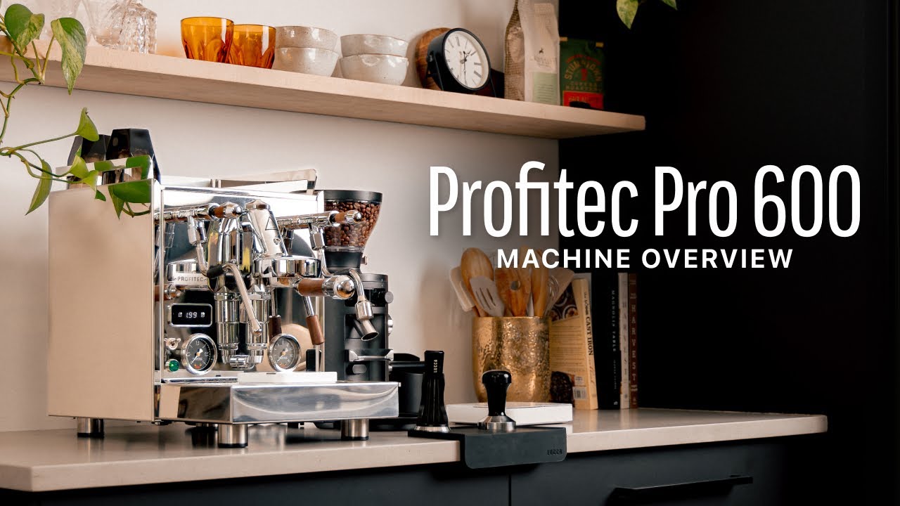The Profitec Pro 600 is a dual boiler espresso machine with quick steam joystick-activated steam and hot water valves, an E61 group head, a quiet vibratory pump, and a built-in PID and shot timer. It runs on an internal 3L water reservoir and can make cafè style drinks for a single person or several back-to-back for a dinner party.